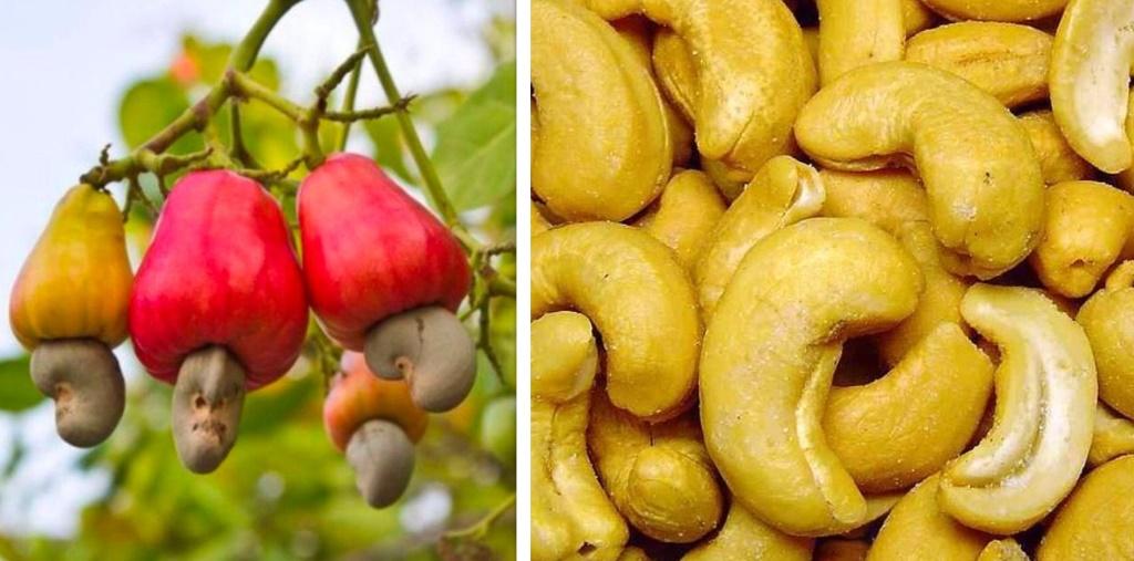 The products include wine, juice, and jam prepared from the cashewnut apple. Other products are cashew milk, cashew yogurts and dried and roasted cashews.