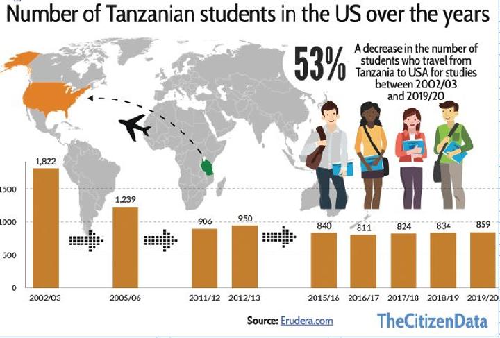 For his part, Dr Charles Kitima, a researcher and former vice chancellor of St Augustine University of Tanzania, said the rise in local universities and programmes that young people liked to go to study abroad including the US has contributed.