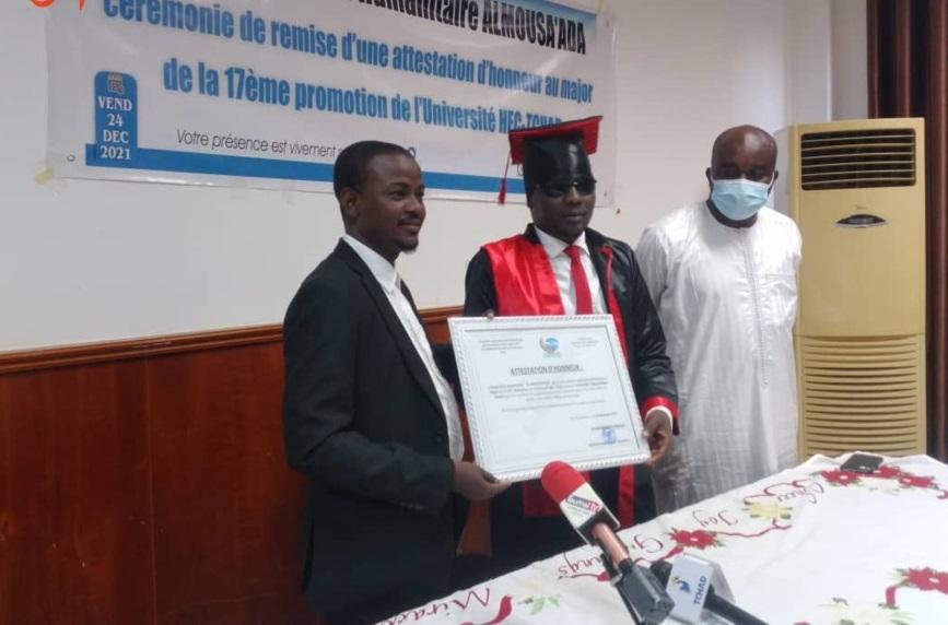 Africa-Press – Tchad. L’association humanitaire Almouss’ada a organisé une cérémonie de remise d’une attestation d’honneur au major de la 17ème promotion de l’université HEC-TCHAD.