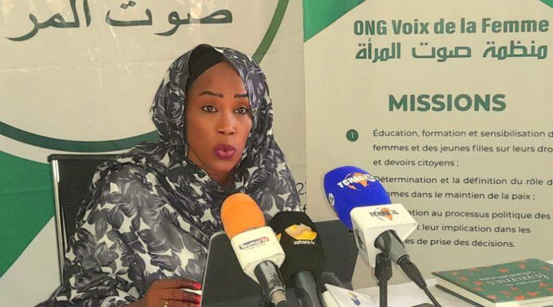 » La Voix de la Femme condamne avec la dernière énergie toute forme de manipulation impliquant les femmes et les mineurs pour perturber la paix et la cohésion sociale chèrement acquises ainsi que le processus de Transition actuellement en cours » a dit la Coordinatrice de Voix de la Femme Amina Tidjani Yaya.