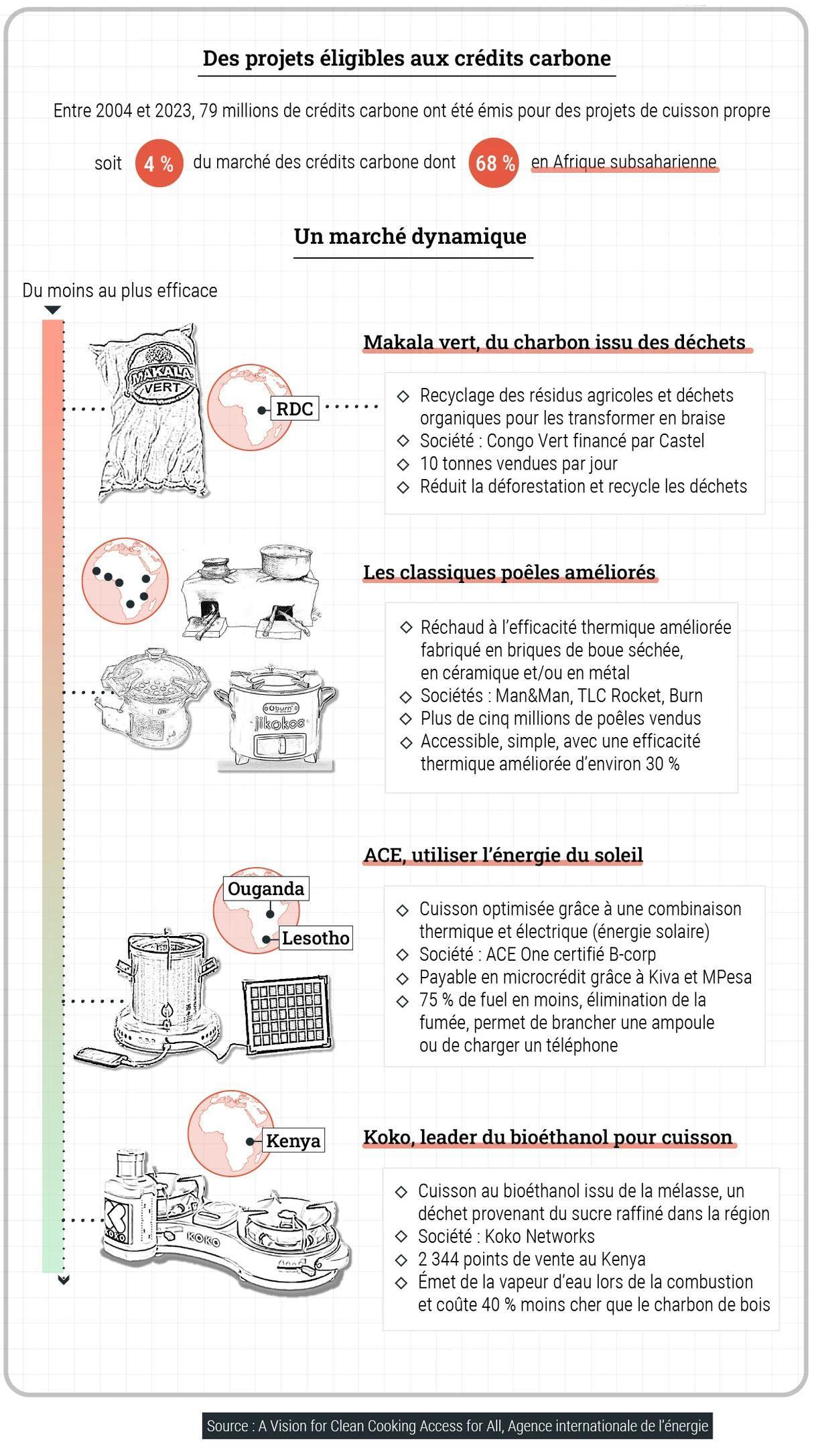 Mais les avantages environnementaux et climatiques indéniables des projets de cuisson propre font d’eux de bons candidats pour attirer les financements climatiques et les crédits carbone, et ainsi mobiliser des capitaux privés internationaux. Ainsi, le français Aera Group, l’un des leader du marché du négoce de crédit carbone en Afrique, soutient des projets de cuisson améliorée au Ghana, en RDC et au Burundi, où près de 400 000 poêles améliorés ont déjà été distribués.