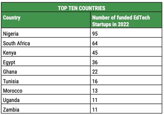 Bien que l’Edtech soit considéré comme étant à ses débuts sur le continent, le nombre des start-ups ayant réussi à mobiliser des financements est passé de 210 en 2020 à 419 en 2022. Les jeunes pousses qui ont réussi à séduire les investisseurs au cours de l’année écoulée se trouvent essentiellement au Nigeria (95), en Afrique du Sud (64), au Kenya (45), en Egypte (36) et au Ghana (22).