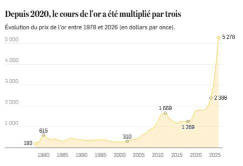 Africa-Press – Tchad. Pour la première fois de son histoire, la valeur de l’once d’or a dépassé les 5 000 dollars, ce lundi 26 janvier. Une hausse historique et rapide qui tient notamment au climat d’incertitude géopolitique, alimenté notamment par les revirements erratiques de la politique trumpiste. Dans ce contexte, la valeur dite « refuge » de l’or attire les investisseurs.