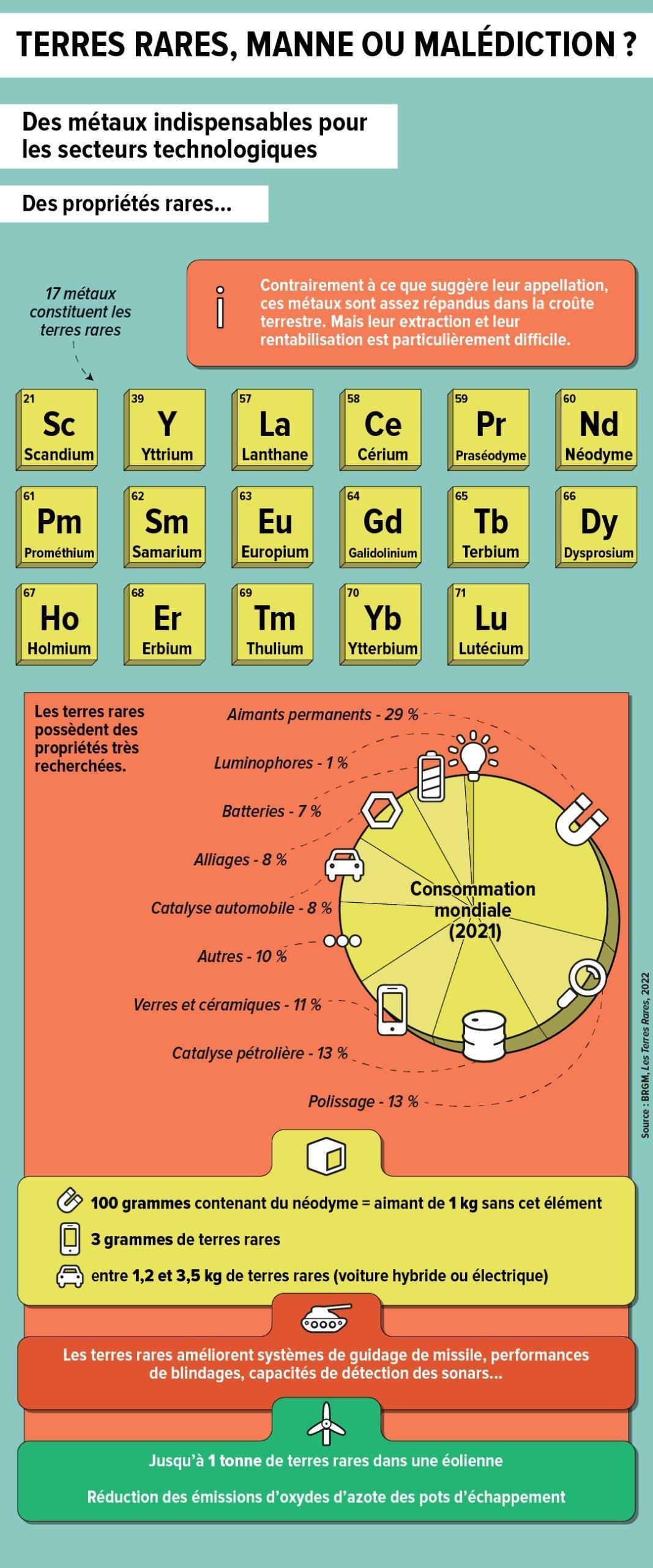 Africa-Press – Tchad. Outre l’explosion de la demande dans les secteurs des technologies – smartphones en tête – le besoin en terres rares se fait de plus en plus pressant pour répondre aux besoins croissants des filières dites « vertes ». Il faut en effet pas moins d’une tonne de terres rares pour une seule et unique éolienne, et les moteurs des voitures électriques ne sont pas moins gourmands… Un paradoxe, sans doute, alors que l’urgence climatique commande de réduire drastiquement le recours aux industries extractives.