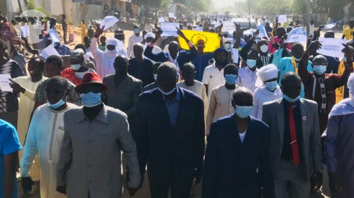 Ils sont des centaines de militants munis des affiches où sont inscrits « non aux massacres de la population par les militaires », « non à l’injustice sociale » ou encore « justice pour les victimes d’Abéché/Sandana ».