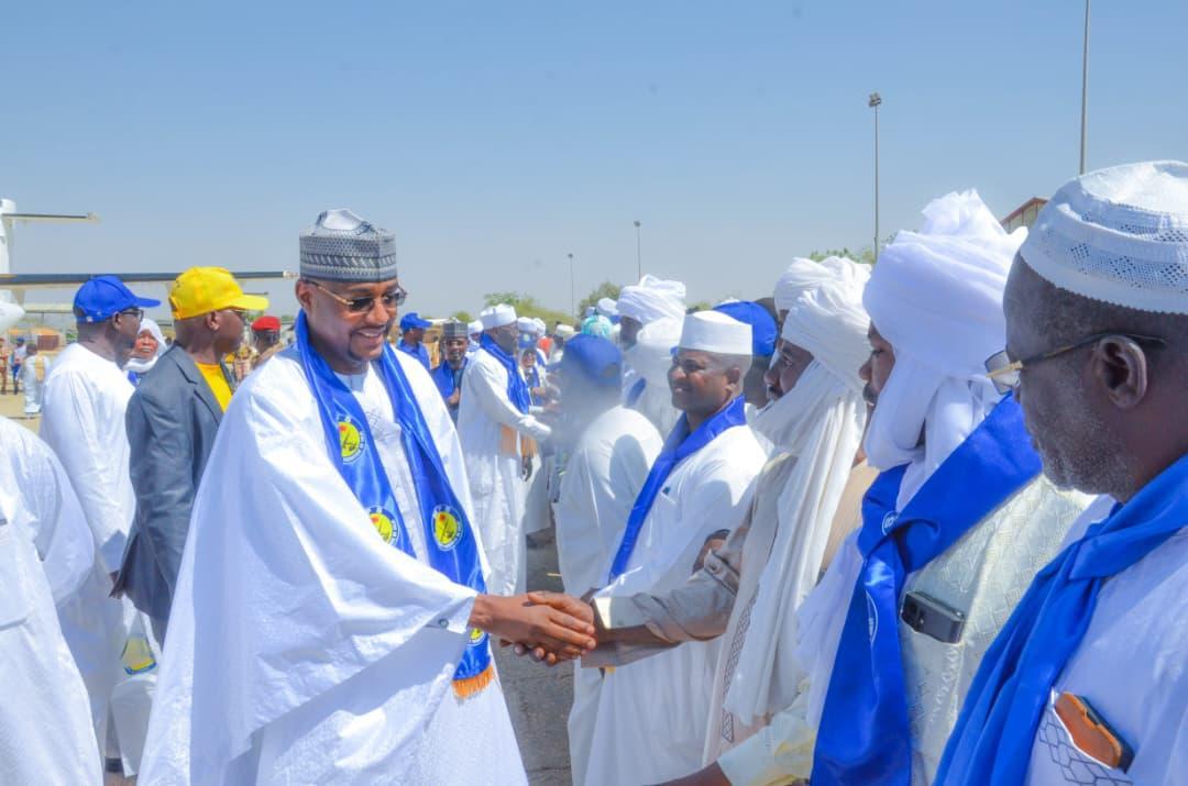 Africa-Press – Tchad. Le mandataire du Mouvement Patriotique du Salut (MPS) chargé de la restructuration des organes de base dans la province du Ouaddaï, Mahamat Saleh Abdeldjelil, est arrivé en milieu de journée à Abéché accompagné d’une importante délégation. À l’aéroport, plusieurs centaines de militantes et militants du parti se sont mobilisés pour lui réserver un accueil chaleureux, témoignant leur attachement au MPS et leur engagement pour la réussite du processus.