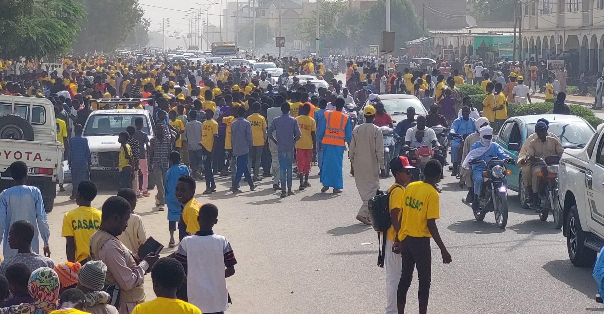 Africa-Press – Tchad. Des centaines de militants et sympathisants de la Coalition des Associations de la société civile pour l’Action Citoyenne (Casac), se sont déployés le long de l’avenue Adoum Tchéré de N’Djamena pour apporter leur soutien au Conseil militaire de transition. C’est une marée humaine, vêtue de jeunes qui a pris d’assaut l’avenue Adoum Tchéré.