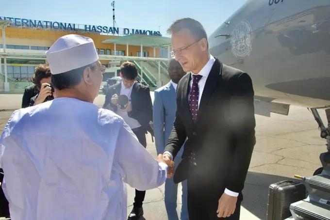 Africa-Press – Tchad. A Ndjamena, le ministre des Affaires Étrangères du Tchad, Mahamat Saleh Annadif, a accueilli ce jeudi 7 décembre à l’aéroport International Hassan Djamous de N’Djamena, le ministre des Affaires Étrangères de la Hongrie, Péter Szijjártó, en visite officielle au Tchad, a annoncé ce jeudi, le ministère des Affaires étrangères du Tchad.