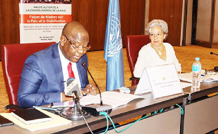 Selon le ministre en charge de l’Intérieur et de la Décentralisation, le Fonds Régional pour la Stabilisation dans la Région du Liptako Gourma est mis en œuvre dans les trois Etats membres à savoir : le Burkina Faso, le Mali et le Niger. M. Hamadou Adamou Souley a salué cette initiative qui se propose de s’attaquer à des zones affectées par la vulnérabilité des communautés aux infiltrations continues et aux attaques des Groupes Armés Terroristes ; le relèvement des zones affectées par la crise, les zones où les communautés ont abandonné leurs terroirs. Il a aussi expliqué que la stabilisation accélérée consiste à une phase de sécurisation des zones cibles de mise en œuvre, et le Niger a dans cette optique, mis en place la Stratégie Nationale de Proximité qui consiste au recrutement des Forces de Sécurité Intérieure dans les terroirs des régions couvertes par cette initiative.