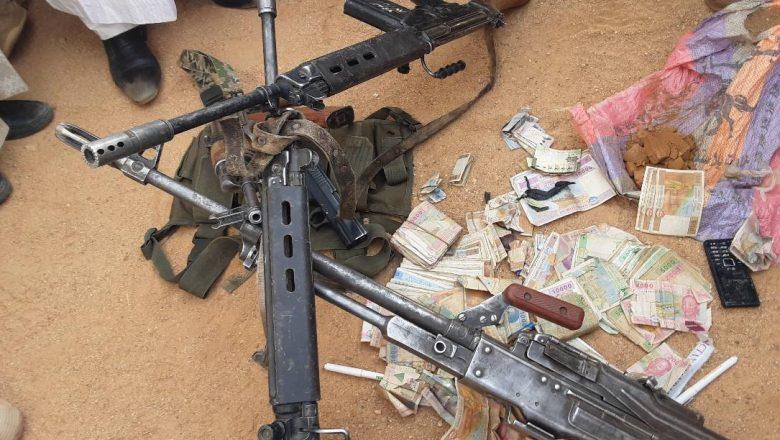 Ce sont au total trois (3) véhicules de marque Land Cruiser, des armes de guerre, des billets de banque et autres objets récupérés des mains des coupeurs de route qui ont été présentés à la presse.
