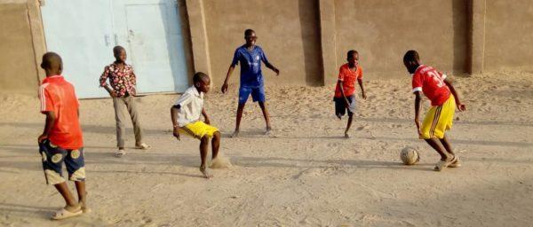 Juste au bord du goudron, sur l’axe de déviation vers l’Office National des Examens et Concours du Supérieur (ONECS), quelques dizaines de jeunes s’adonnent aisément au plaisir du ballon rond.
