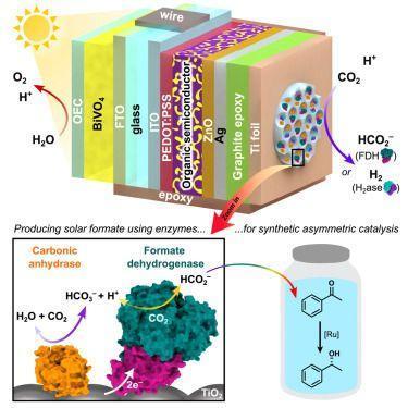 Le dispositif que les scientifiques ont élaboré, nommé « feuille semi-artificielle » est un composé hybride sous forme de couches empilées, associant des polymères organiques (macromolécules de carbone combinées à du titane) et des enzymes bactériennes. Les polymères permettent d’absorber la lumière comme source d’énergie, tandis que les enzymes transforment le dioxyde de carbone et l’eau en formiate (HCOO-), la molécule d’intérêt, servant de combustible pour alimenter d’autres réactions chimiques.