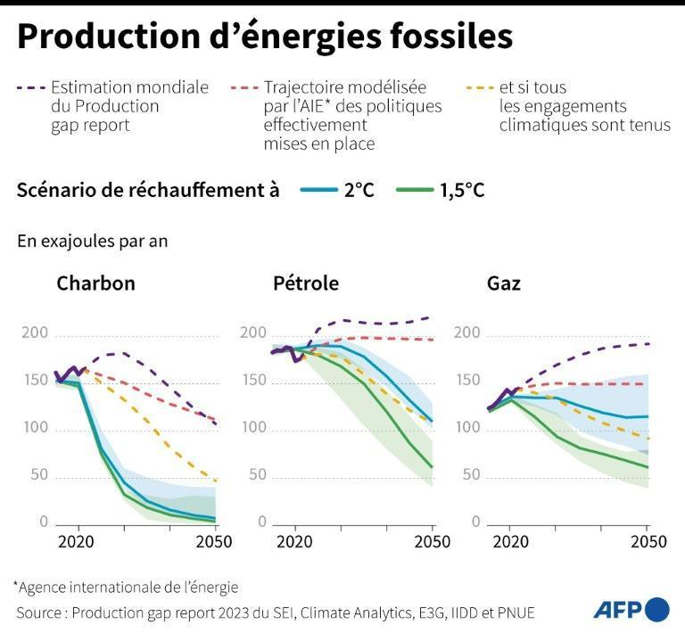 Le rapport annuel sur l’écart de production du Programme des Nations unies pour l’environnement (PNUE) montre clairement que les projets de production des 20 principaux pays producteurs – dont les Etats-Unis, la Chine, la Russie, l’Australie et les Emirats arabes unis, hôtes de la COP28 – vont dans le sens opposé.