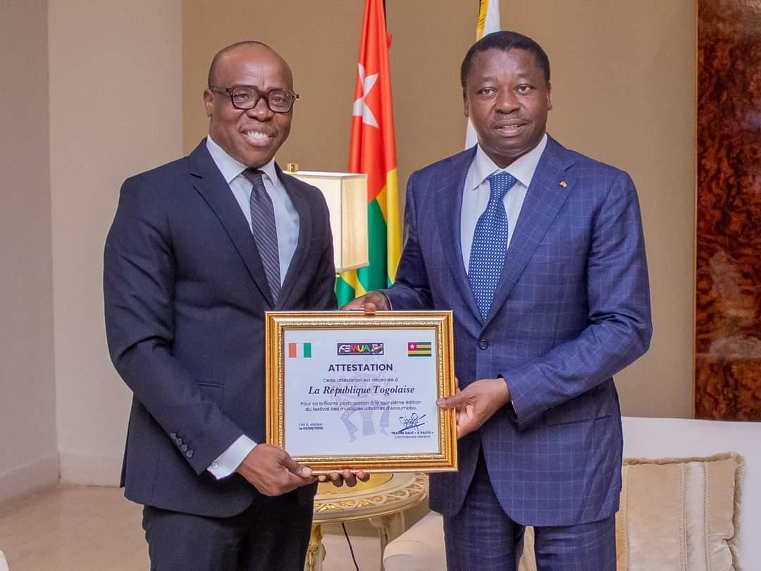 « C’était l’occasion pour nous de lui témoigner, à nouveau, notre gratitude pour sa contribution à la brillante participation de son pays au FEMUA 15 en tant que pays invité d’honneur », a confié A’ Salfo après leur rencontre avec Faure Gnassingbé.