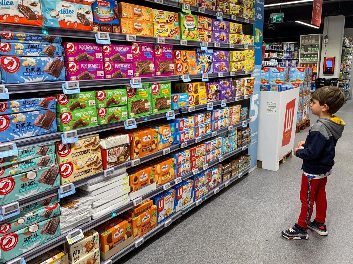 À des familles très variées, mais pour schématiser, nous avons la famille des bonbons et des chocolats, la famille des biscuits et des gâteaux très consommés au moment du goûter, et la famille des en-cas, comme les barres de céréales. Les produits du petit-déjeuner sont eux aussi très concernés, tout comme les boissons, qu’elles soient lactées, à base de fruits, énergisantes ou gazeuses (soda). Plus surprenant : beaucoup de yaourts et de spécialités fromagères dépassent les seuils calculés par l’OMS. La dernière catégorie de produits est constituée des plats servis dans les fastfoods.