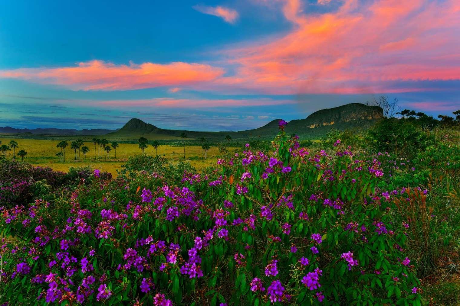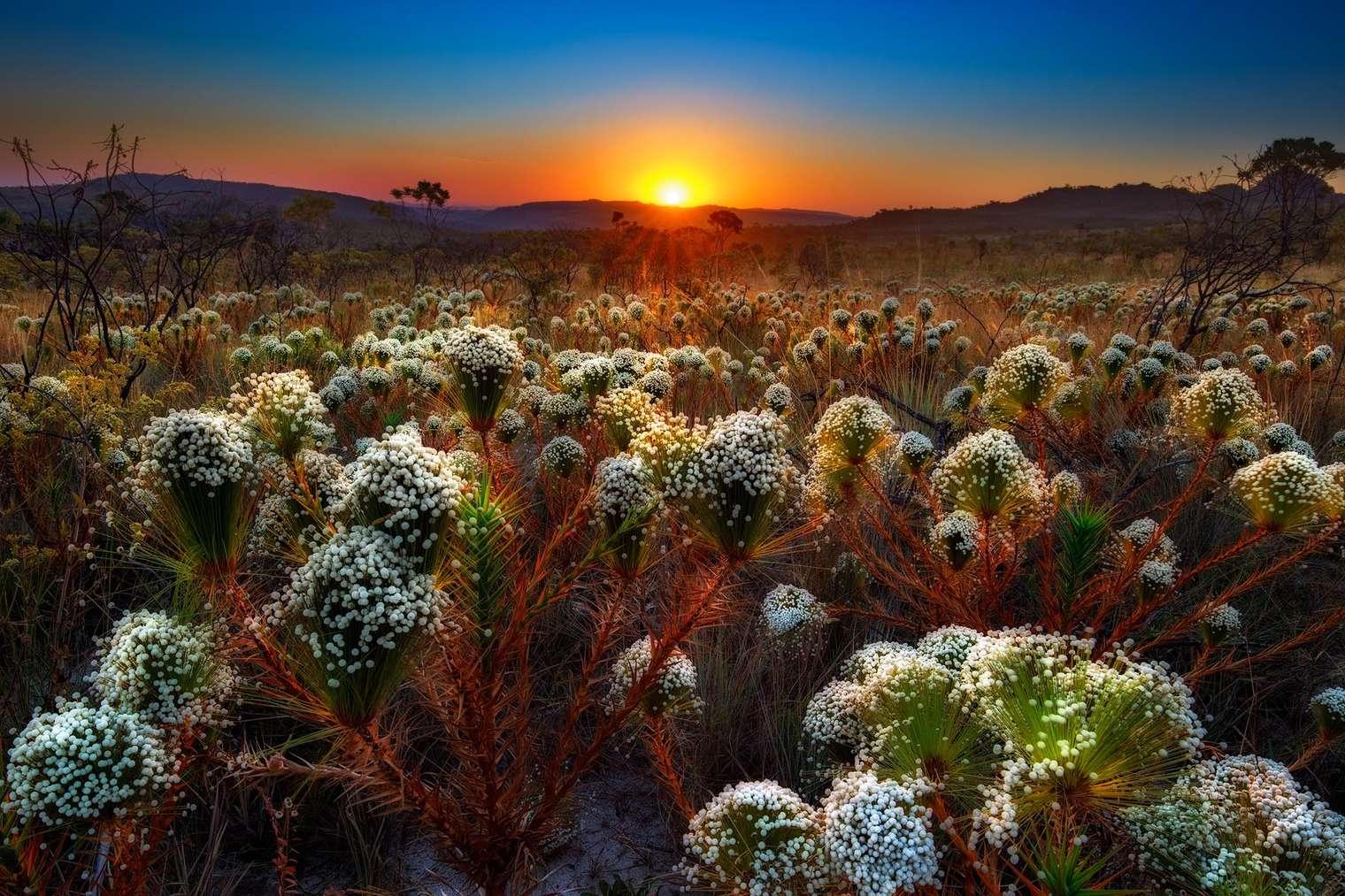 Zone de transition vers la forêt amazonienne, cette savane arborée est principalement située au Brésil dont elle couvre 22 % de la superficie. Le Cerrado s’étend des rives de l’océan Atlantique jusqu’au centre du continent, débordant sur le Paraguay et la Bolivie. C’est l’un des biomes le plus riche et le plus ancien au monde, 25 types de phyto-physionomies lui sont reconnus. Terre de contrastes paysagers, sans demi-mesure, ce territoire ne connaît que deux saisons, la saison sèche et la mousson brésilienne.