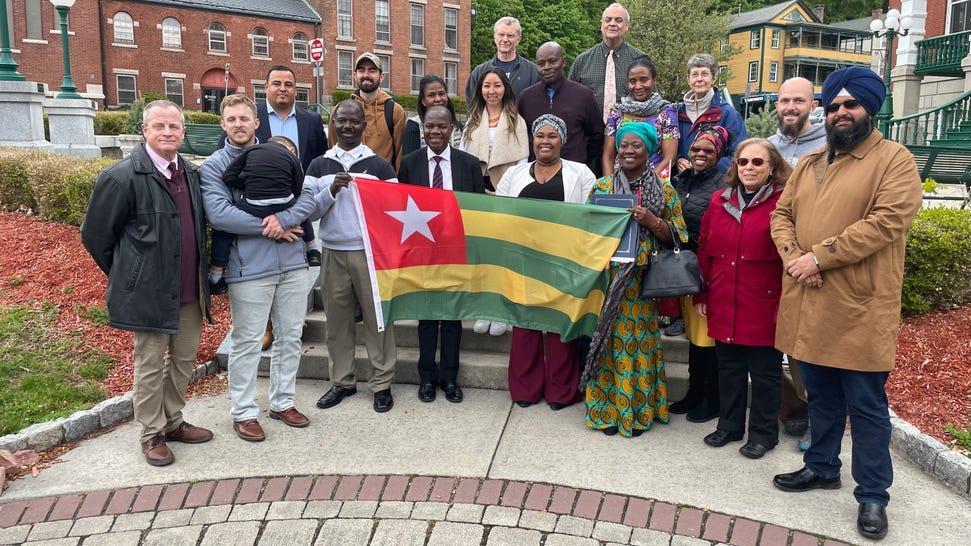 Le maire de Norwich, Peter Nystrom, a prononcé un discours du conseil municipal, reconnaissant le jour de l’indépendance du Togo et remis un certificat de reconnaissance à Marguerite Balogou pour son service à Norwich en tant que membre de la Communauté Togolaise de Connecticut.