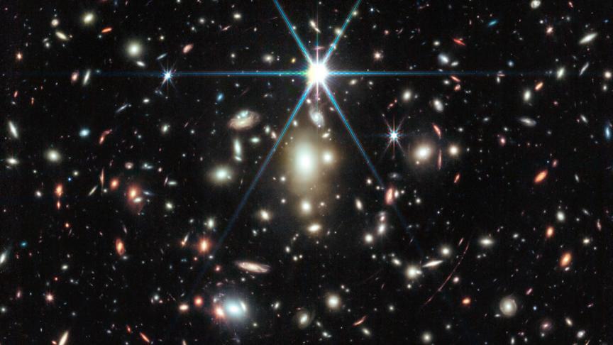 Hubble et Webb ont tous deux pu détecter Earendel grâce à son alignement chanceux derrière une ride de l’espace-temps créée par un énorme amas de galaxies. L’amas de galaxies, situé entre nous et Earendel, est si massif qu’il déforme le tissu de l’espace lui-même, ce qui produit un effet de loupe, permettant aux astronomes de regarder à travers l’amas comme à travers une loupe.