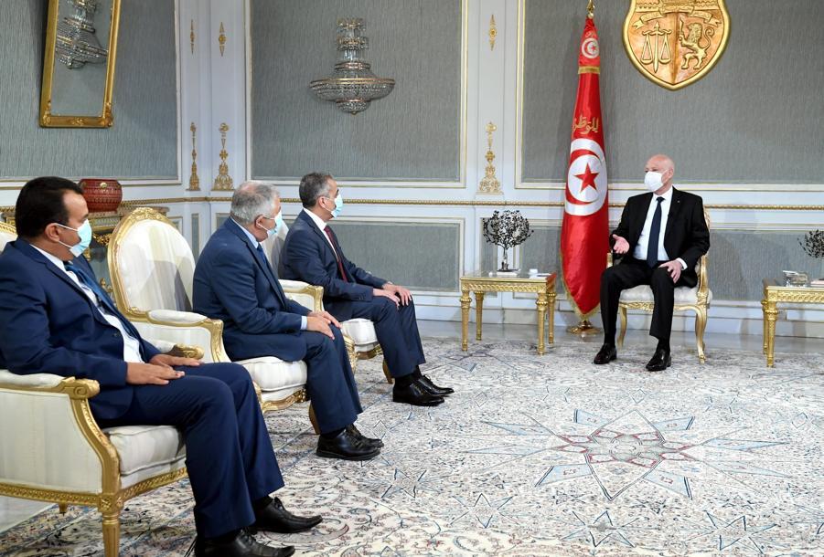 أفريقيا برستونس. استقبل رئيس الجمهورية قيس سعيد، مساء اليوم الخميس 5 أوت 2021 بقصر قرطاج، مصباح الهلالي، الرئيس المدير العام للشركة الوطنية لاستغلال وتوزيع المياه، وحمادي الحبيب، مدير عام مكتب التخطيط والتوازنات المائية بوزارة الفلاحة والصيد البحري والموارد المائية، وسمير الهدياوي، عن الإدارة العامة للموارد المائية بوزارة الفلاحة والصيد البحري والموارد المائية.