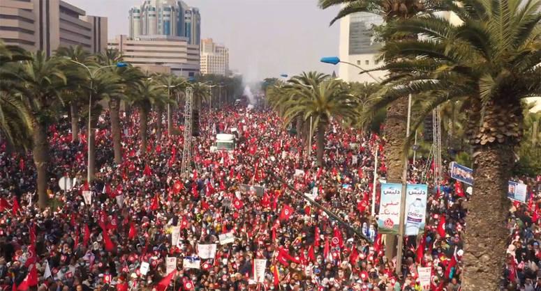 افريقيا برس – تونس. طارق عمراني – نشر موقع ميدل ايست البريطاني تقريرا تحت عنوان Tunisia’s Ennahda holds large street protest, fuelling government crisis تحدث عن المسيرة التي نظمتها حركة النهضة في شارع محمد الخامس وسط العاصمة السبت 27 فيفري.
