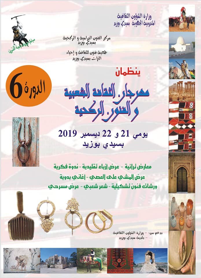 وبيّن رئيس جمعية فنون للثقافة وإحياء التراث بسيدي بوزيد كمال بكاري في تصريح لـ (وات) أن فعاليات الافتتاح تضمّنت مجموعة من العروض والمعارض في الفنون الشعبية والشعر والغناء وفقرات من العرس التقليدي والجحفة والفروسية، وتضمنت عددا من المعارض التراثية وعرض للأزياء التقليدية وعرض المشي على العصي وأغاني بدوية وورشات فنون تشكيلية وشعر شعبي ومعارض في المنتوجات الحرفية (منتوجات السمار والحلفاء والحايك والمرقوم).