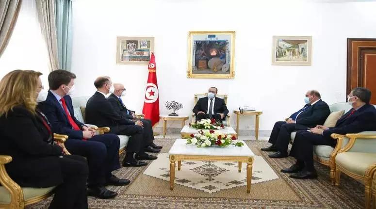 افريقيا برستونس. تحادث رئيس الحكومة هشام مشيشي صباح اليوم الخميس 06 ماي 2021 بقصر الحكومة بالقصبة مع الرئيس المدير العام لشركة “سنام” الإيطالية ماركوس الفيرا بحضور سفير إيطاليا بتونس لورانزو فانارا ووزير الصناعة والطاقة والمناجم بالنيابة محمد بوسعيد.