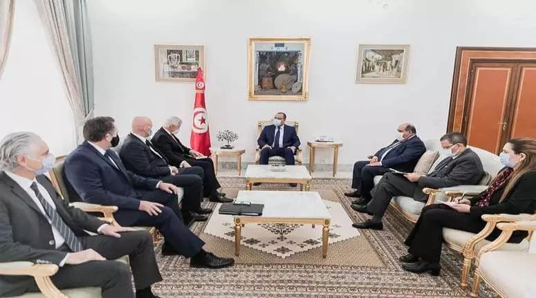 افريقيا برس – تونس. التقى رئيس الحكومة هشام مشيشي صباح اليوم الاربعاء 31 مارس 2021 بقصر الحكومة بالقصبة، سفير بريطانيا بتونس ادوارد اوكدن والمستثمران الانقليزيان في قطاع الطاقة جونتان تايلور وجيمس برفييك عن شركة « Anglo Tunisian Oil and Gaz » بحضور وزير الصناعة والطاقة والمناجم بالنيابة، محمّد بوسعيد.