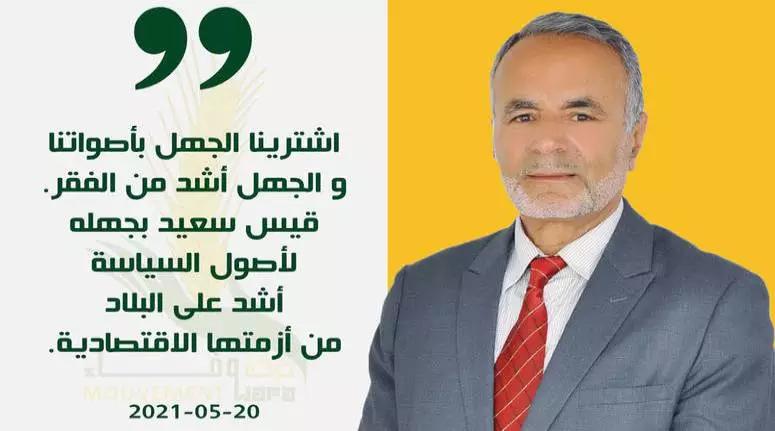 وقال عبد الرؤوف العيادي ” اشترينا الجهل بأصواتنا والجهل أشد من الفقر”، مضيفا ” قيس سعيد بجهله لأصول السياسة أشد على البلاد من أزمتها الاقتصادية”.
