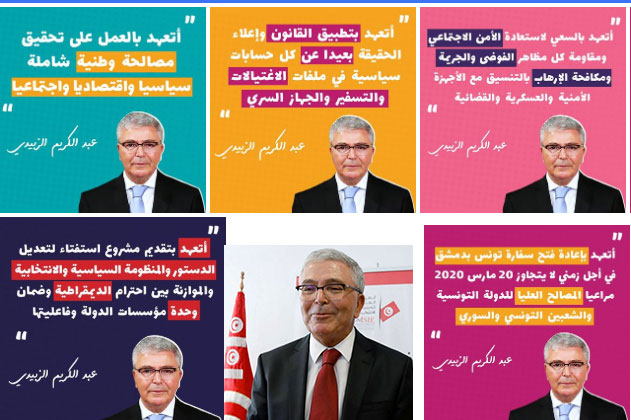كما تعهّد الزبيدي بتعديل الدستور والعمل على تحقيق مصالحة وطنية شاملة سياسية اقتصادية واجتماعية ما دفع بعض النشطاء بالقول إن الزبيدي يستعدّ لإعادة بن علي في الحكم.