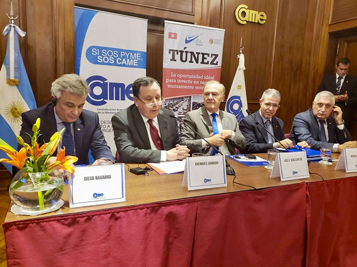 بمناسبة زيارته إلى الارجنتين، أشرف وزير الشؤون الخارجية، خميس الجهيناوي، على افتتاح المنتدى الاقتصادي التونسي الأرجنتيني الذي تمّ تنظيمه بمقرّ الكنفدرالية الأرجنتينية للمؤسسات المتوسطة، بمشاركة عدد هام من رجال الأعمال وممثلي غرف التجارة والصناعة والمؤسسات الاقتصادية الناشطة في قطاعات الفلاحة والصناعة والخدمات.