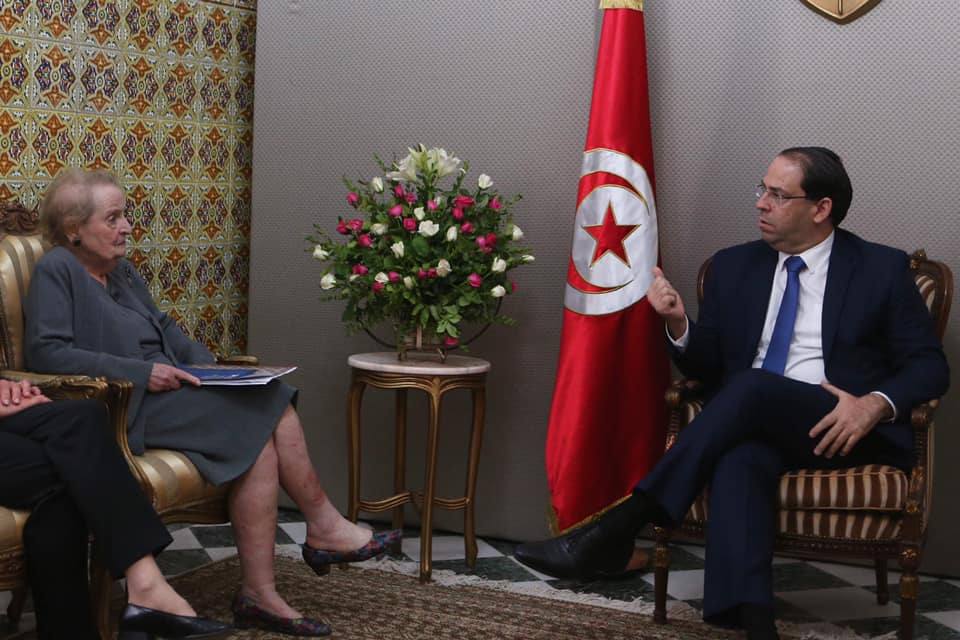 استقبل رئيس الحكومة يوسف الشاهد مادلين اولبرايت رئيسة مجلس ادارة المعهد الديمقراطي الوطني الامريكي ووزيرة الخارجية الامريكية السابقة على راس الوفد المشارك في الاجتماع السنوي لمجلس ادارة المعهد المنعقد بتونس من 19 الى 21 جوان الجاري.
