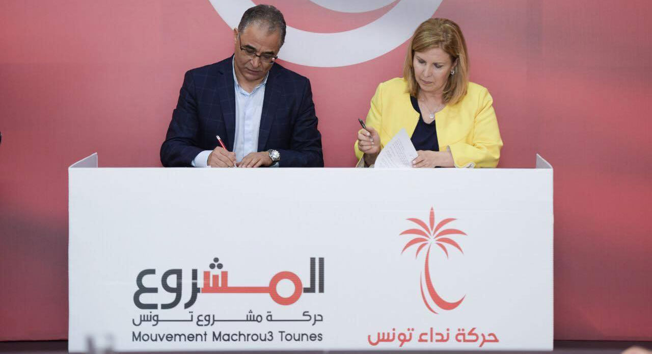 وكانت حركتا نداء تونس ومشروع تونس، قد أعلنتا الأحد الماضي عن امضاء وثيقة إتفاق تحالف وطني بينهما، ونص الاتفاق على تكوين كتلة موحدة داخل البرلمان، والانطلاق في مسار توحيدي يجمع كلا من حركتي نداء تونس ومشروع تونس، تكون منفتحة على جميع القوى السياسية من العائلة الوسطية الديمقراطية والشخصيات الوطنية.