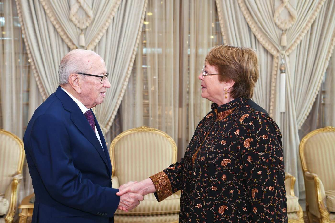 استقبل رئيس الجمهورية الباجي قايد السبسي، يوم الخميس 13 جوان 2019 بقصر قرطاج، ميشيل باشلي Michelle Bachelet، المفوضة السامية للأمم المتحدة لحقوق الإنسان.