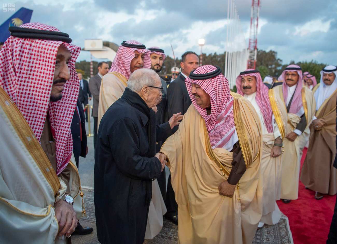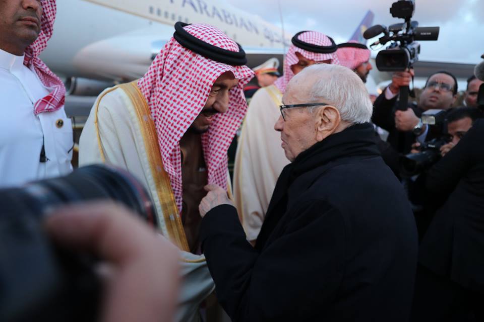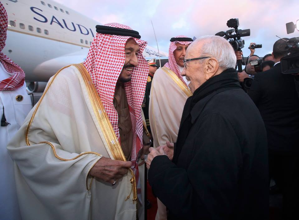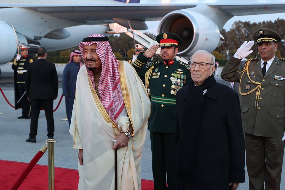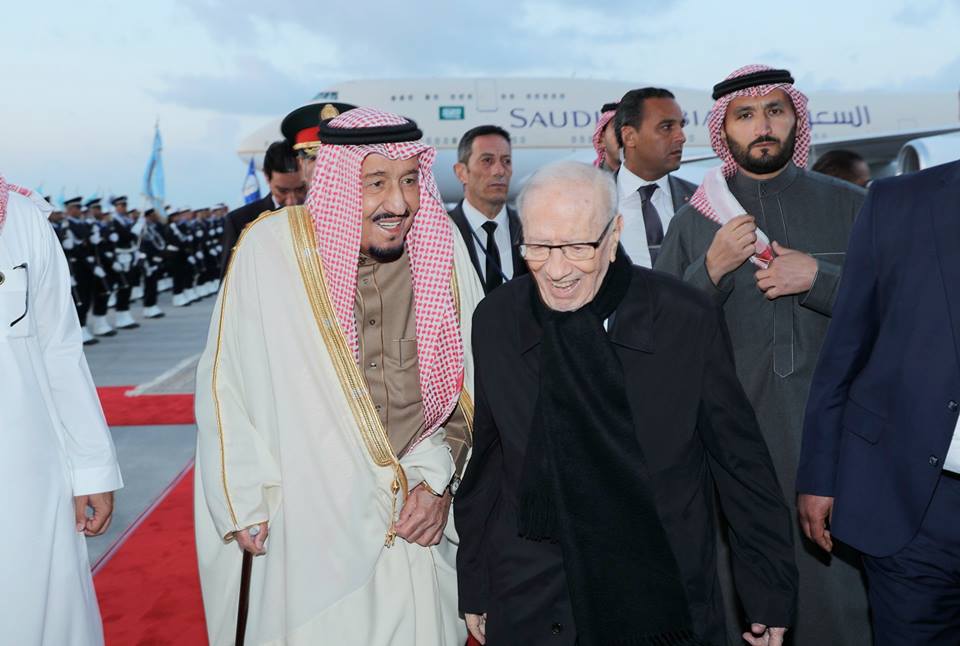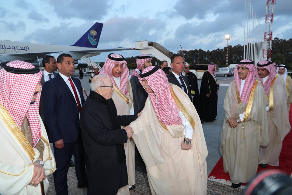 استقبل رئيس الجمهورية الباجي قايد السبسي الملك السعودي سلمان بن عبد العزيز آل سعود، الذي يؤدي زيارة دولة إلى تونس أيام 28، 29 و30 مارس الجاري على رأس وفد كبير من الأمراء والوزراء وكبار المسؤولين في المملكة.