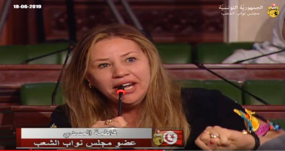 ومباشرة بعد دعوة البحيري تدخّلت النائبة فاطمة المسدّي وعبّرت عن رفضها القاطع لمقترح البحيري وصرخت قائلة “لا لأخونة البرلمان التونسي ولا للترحم على زعيم الاخوان المسلمين واذا النهضة ترتبط بالاخوان ادعو إلى تصنيفها حركة ارهابية”.
