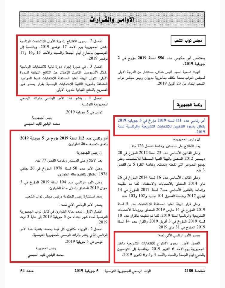تم نشر الأمر المتعلّق بدعوة الناخبين بالرائد الرسمي للجمهورية التونسية لتكون بذلك رئاسة الجمهورية قد احترمت الآجال التي أعلنتها الهيئة العليا المستقلة للانتخابات.