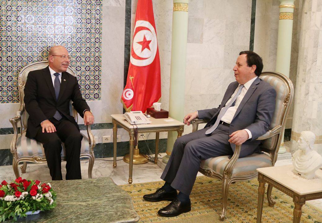 استقبل وزير الشؤون الخارجية خميّس الجهيناوي بمقر الوزارة، سفير تركيا بتونس عمر فاروق دوغان، الذي أدى له زيارة توديع بمناسبة انتهاء مهامه ببلادنا.