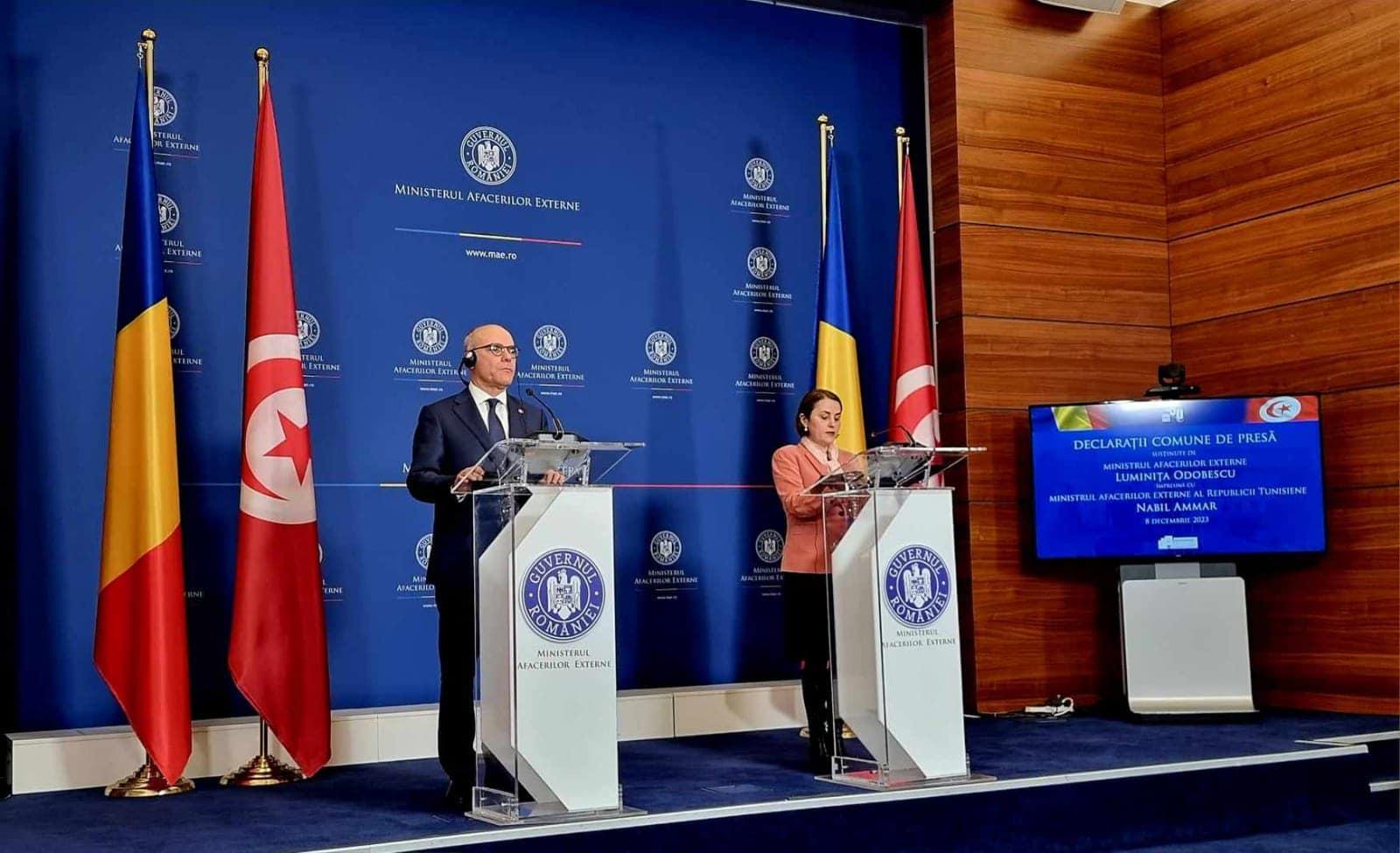 أفريقيا برس – تونس. وقع وزير الشؤون الخارجية والهجرة والتونسيين بالخارج نبيل عمّار، عقب جلسة عمل مع نظيرته الرومانية لومينيتا تيودورا أودوبسكو، اليوم الجمعة بمقر وزارة الخارجية الرومانية، اتفاق تعاون ثنائي في مجالي التعليم العالي والبحث الأكاديمي، ومذكرة تفاهم بين الأكاديمية الدبلوماسية الدولية بتونس والمعهد الدبلوماسي الروماني.