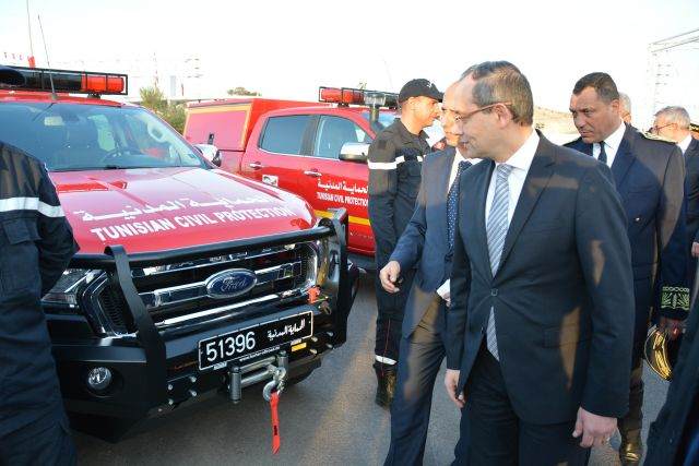 أشرف وزير الداخلية “هشام الفراتي” بحضور سفير ألمانيا بتونس “Andreas Reinicke” والمدير العام للديوان الوطني للحماية المدنية ووالي تونس، على حفل تسلّم تجهيزات ومعدات كهبة من الجانب الألماني لفائدة الديوان الوطني للحماية المدنية، وذلك في إطار التعاون القائم بين جهازي الحماية المدنية التونسية والمكتب الفيدرالي الألماني للحماية المدنية والمساعدة إبان الكوارث “BBK”.