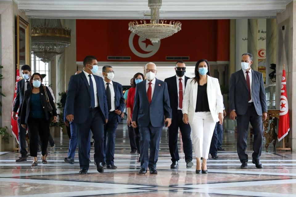 ونقلت الصفحته الرسمية للغنوشي على موقع “فايسبوك” عنه تشديده على ان ضرورة استمرار الدولة ووحدة مؤسساتها امام ما تعيش من حرب ضارية ضد عدو الإنسانية المشترك كوفيد-19 . واعتبر ان تونس في حاجة اكيدة اليوم الى وحدة مؤسساتها وتضامن نخبها والابتعاد عن التجاذبات واحياء عناصر الحياة والعمل والبذل وتكريس قيم التضامن الوطني.