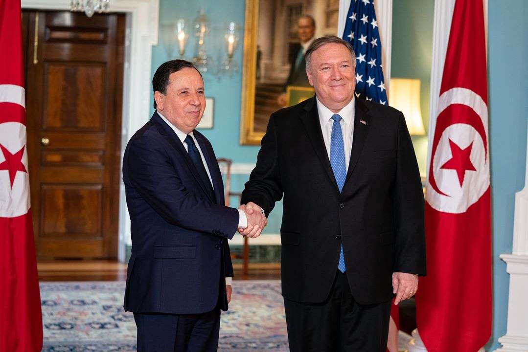 من جانبه، أعرب وزير الخارجية الأمريكي مايك بومبيو عن تطلع الولايات المتحدة الامريكية لإستمرار نسق التعاون المتين القائم بين البلدين في مختلف المجالات، مشيدا بمستوى التعاون المتميز بين البلدين وبالجهود التي تقوم بها تونس لتكريس الديمقراطية، ومؤكدا إلتزام الولايات المتحدة الأمريكية مواصلة دعم تونس في المجالات السياسية والامنية والاقتصادية.