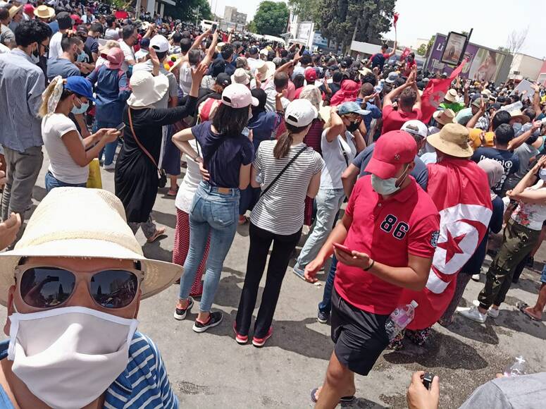 ودعا ناشطون بمواقع التّواصل الاجتماعي مؤخرا، إلى التّظاهر في العاصمة تونس بالتّزامن مع الذكرى 64 لإعلان الجمهورية في 25 جويلية من كل عام، مطالبين بإنهاء الأزمة السّياسية ورحيل الحكومة وحلّ البرلمان.