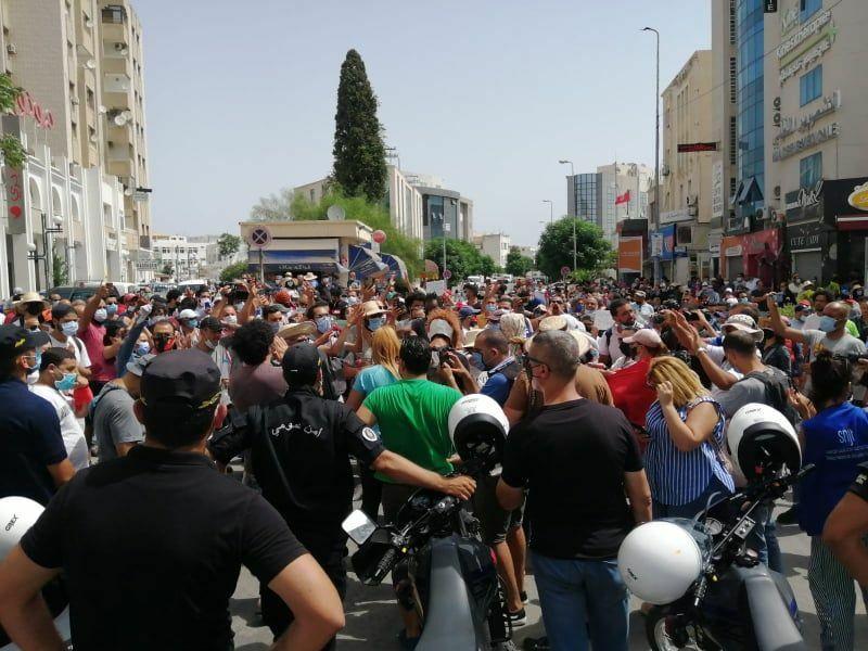 أفريقيا برس – تونس. تجمع مئات التّونسيين، الأحد، بأحد الشوارع القريبة من مقر البرلمان غربي العاصمة، احتجاجا على تردي الأوضاع الصّحية والسّياسية بالبلاد، وللمطالبة برحيل الحكومة وحلّ البرلمان، وسط حضور أمني كثيف.
