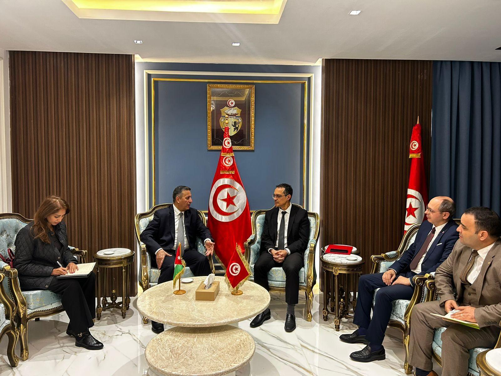 أفريقيا برس – تونس. أكّد لقاء جمع وزير الفلاحة والموارد المائيّة والصّيد البحري، عز الدين بن الشيخ، وسفير المملكة الأردنيّة الهاشميّة لدى تونس،عبد الله أبو رمان، حرصهما المشترك على مزيد دعم وتطوير التعاون الثنائي بما يخدم الأمن الغذائي ويعزّز المصالح المتبادلة بين البلدين الشقيقين.