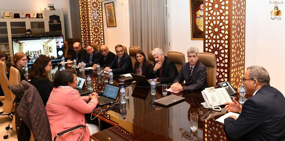 وأشرف على هذه الجلسة وزير التربية محمد علي البوغديري بحضور مدير قسم التربية في البنك الدولي لمنطقة الشرق الأوسط وشمال إفريقيا أندرياس بلوم و المكلفة بالتربية بمكتب البنك الدولي بتونس حمدات بيوسف وخبراء البنك الدولي و رئيس الديوان شكري التيساوي وعدد من إطارات الوزارة.