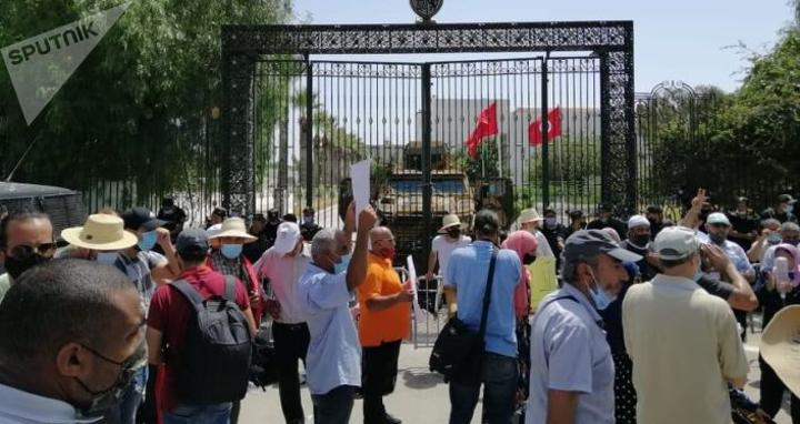وحاول الغنوشي ونائبته دخول مبنى مجلس النواب، لكنه وجد أن بابه مغلق وأن العسكريين المكلفين بحراسته يرفضون دخوله، وذلك تنفيذا لقرارات رئيس البلاد قيس سعيد، بتجميد عمل المجلس النيابي.