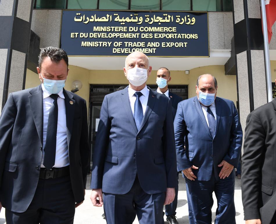 أفريقيا برس – تونس. تحول رئيس الجمهورية قيس سعيد، ظهر اليوم الأربعاء 4 أوت 2021، إلى مقر وزارة التجارة وتنمية الصادرات.وأكد رئيس الدولة، في لقاءه مع وزير التجارة وتنمية الصادرات، على ضرورة التصدي لكل مظاهر المضاربة واحتكار المواد والسلع وفرض احترام الأسعار، مشددا على أنه لا مجال للتسامح مع كل من يحاول التحكم في قوت التونسيين. ودعا رئيس الجمهورية جميع الأطراف المتداخلة للتحلي بالحس الوطني وتحمل المسؤولية في هذه المرحلة من تاريخ تونس والمبادرة بالتخفيض في الأسعار.