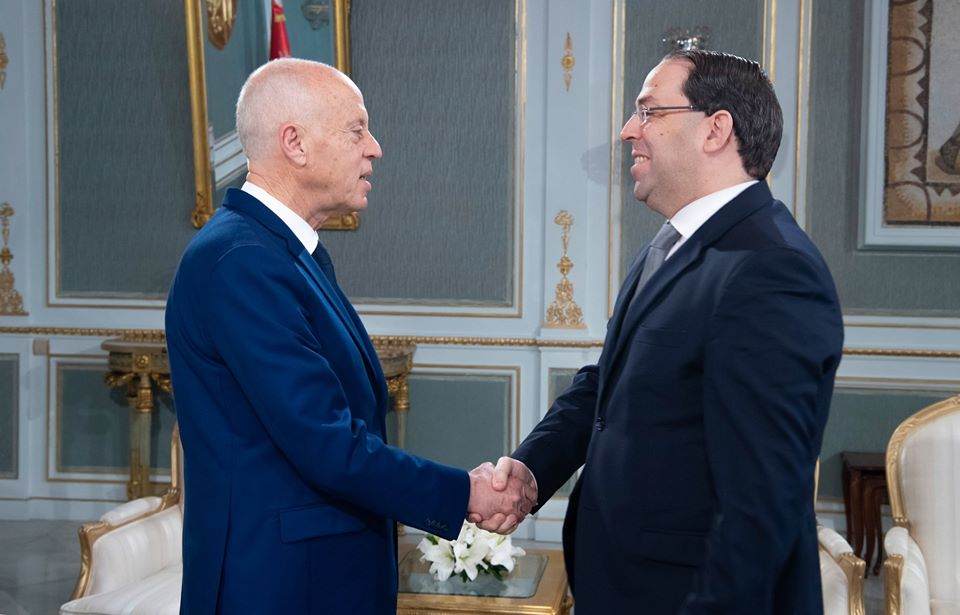 استقبل رئيس الجمهورية قيس سعيد صباح الخميس 12 ديسمبر 2019 بقصر قرطاج رئيس حكومة تصريف الأعمال يوسف الشاهد.