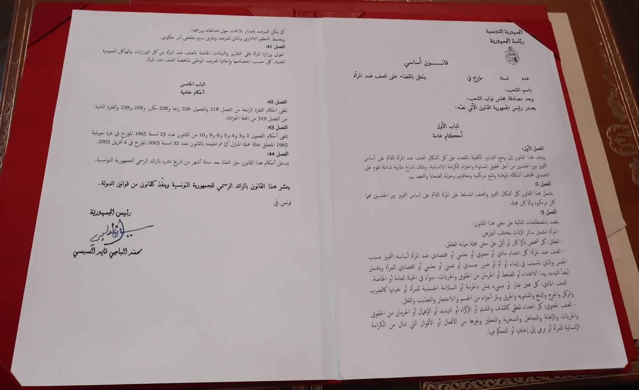 تولّى رئيس الجمهورية الباجي قايد السبسي يوم الجمعة 11 أوت 2017 ختم القانون الأساسي الذي يتعلّق بالقضاء على العنف ضد المرأة.