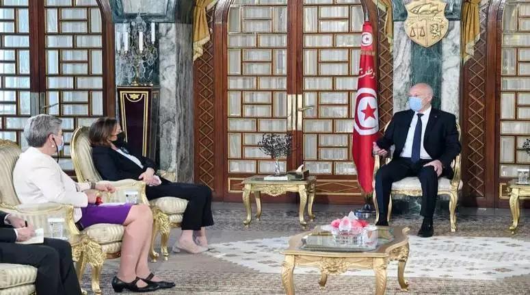 افريقيا برس – تونس. استقبل رئيس الجمهورية قيس سعيّد، صباح اليوم الخميس 20 ماي 2021 بقصر قرطاج، كلا من لوتشيانا لامورجيزي، وزيرة الداخلية الإيطالية، و يلفا يوهانسون، المفوضة الأوروبية المكلفة بالشؤون الداخلية، اللتين تؤديان زيارة عمل إلى بلادنا.